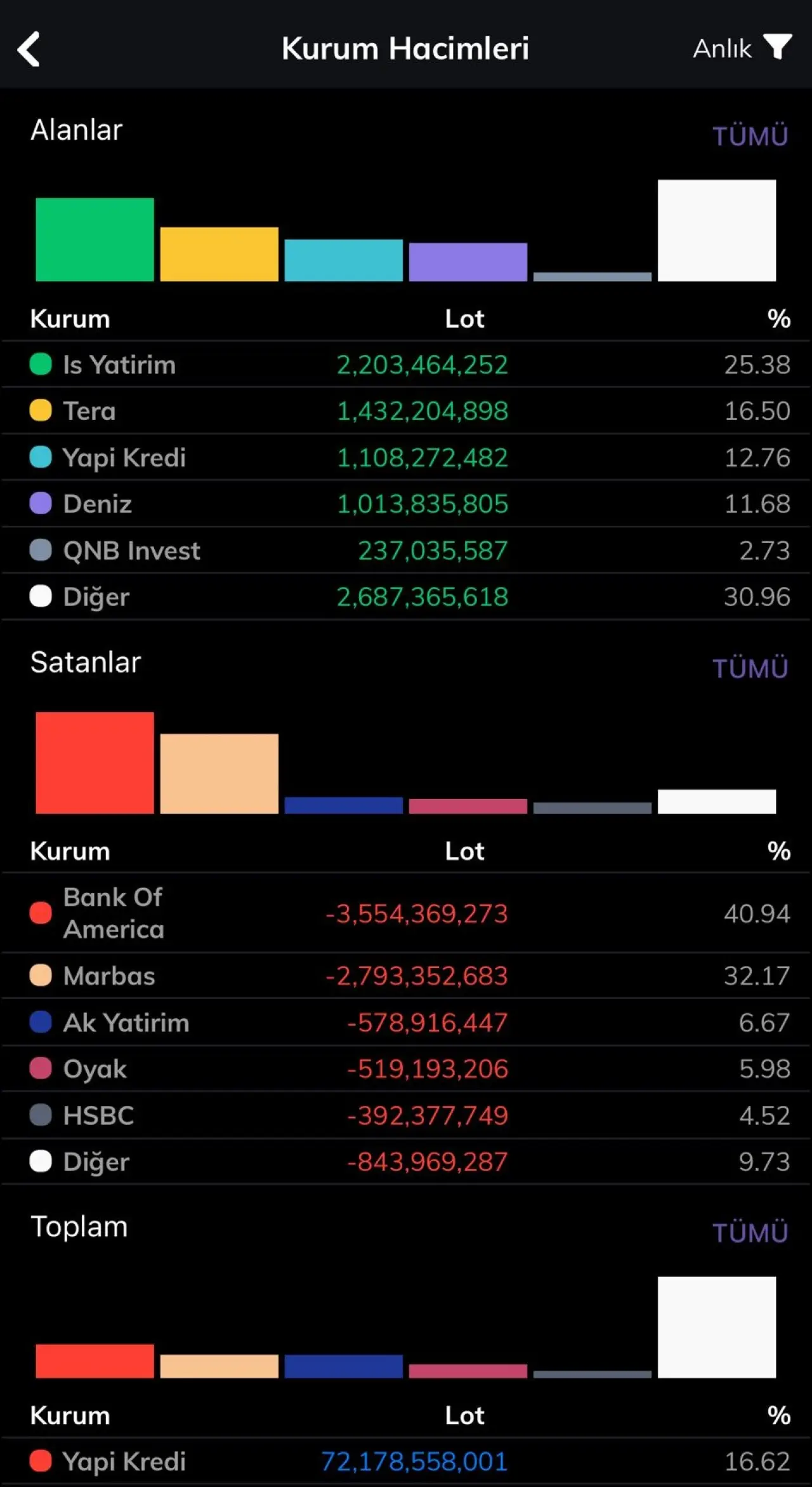 Deniz ve QNB Invest gibi diğer yerli kurumlar da alımlara destek vererek, toplam alım hacminin önemli bir kısmını oluşturuyor. Bu alımlar, piyasaya olan güvenin devam ettiğini ve mevcut seviyelerin cazip görüldüğünü işaret ediyor.
