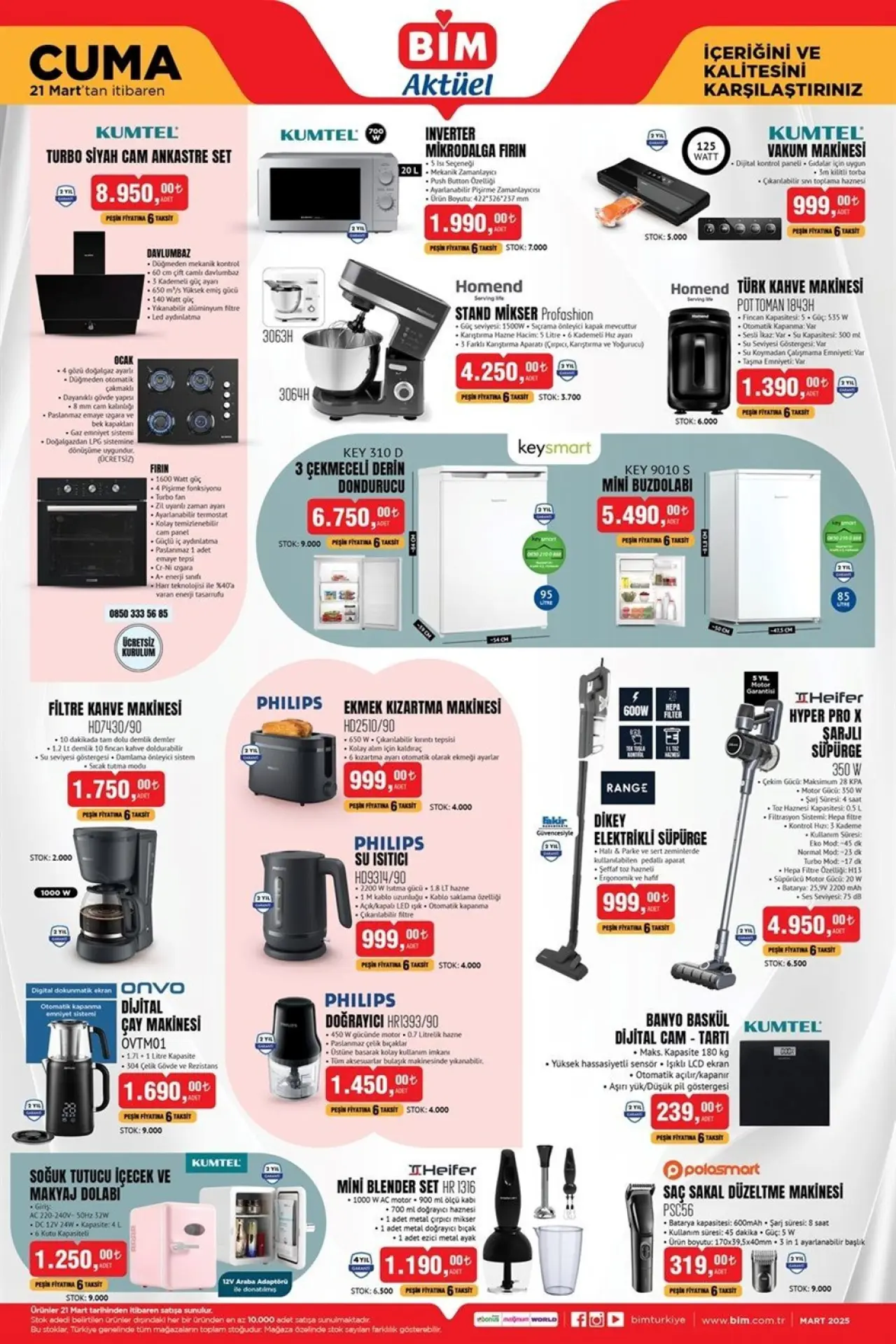 18 Mart 2025 tarihinde, ülkemizin dört bir yanındaki BİM marketlerinde yepyeni ürünler raflardaki yerini aldı. Bu haftanın aktüel ürünleri arasında mikser, mikrodalga fırın, şarj edilebilir süpürge, çay makinesi ve daha birçok ürün bulunuyor.