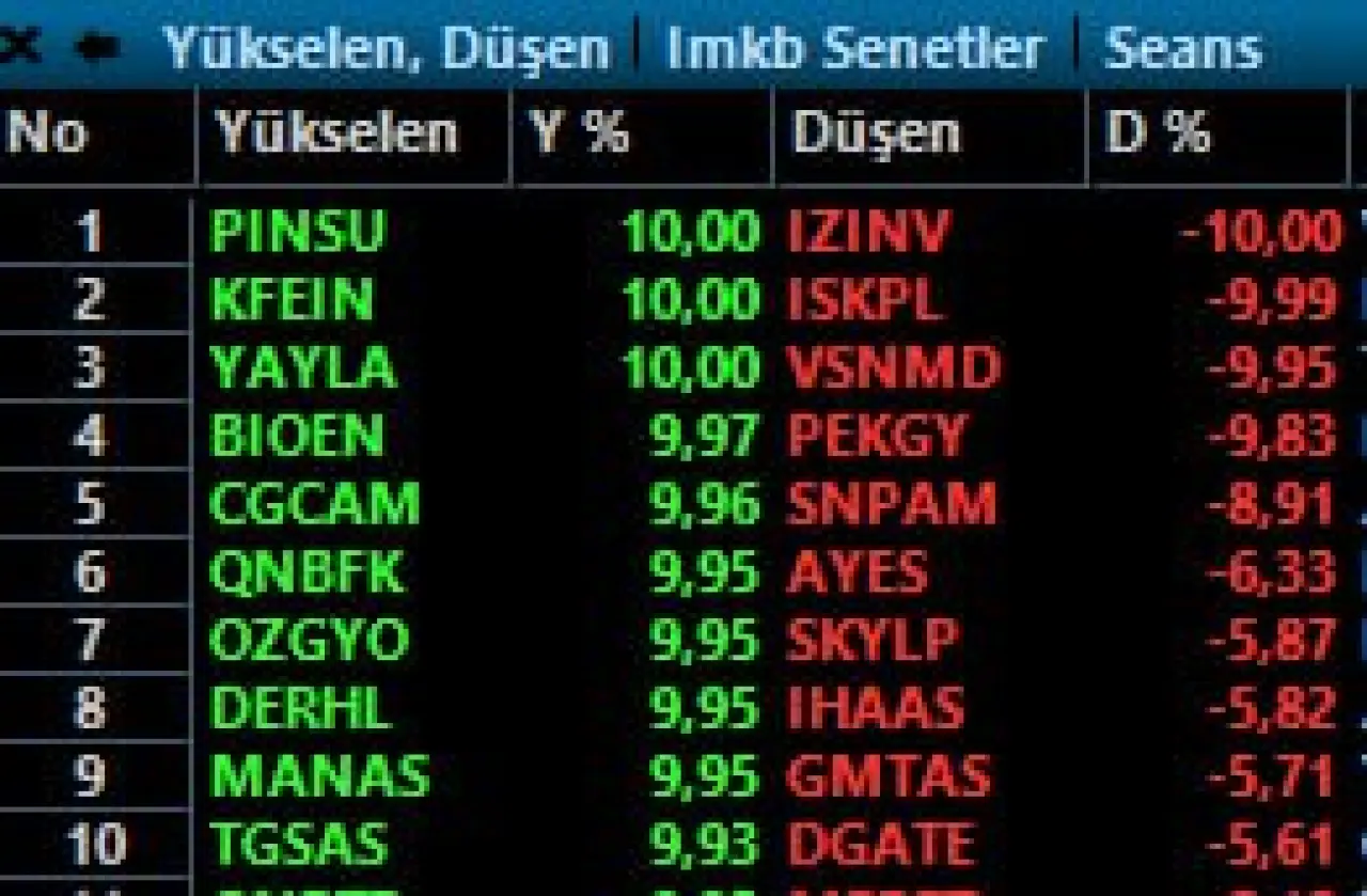 PINSU, KFEIN, YAYLA, BIOEN, CGCAM, QNBFK, OZGYO, DERHL, MANAS, TGSAS