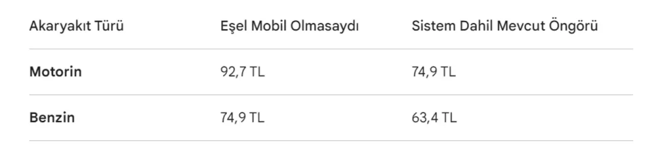 Sistem olmasaydı fiyatlar ne olurdu? 85 dolarlık petrol senaryosunda, eşel mobil sistemi devre dışı kalsaydı akaryakıt fiyatlarının ulaşacağı seviyeler ile mevcut durum arasındaki fark şu şekilde detaylandırıldı:
