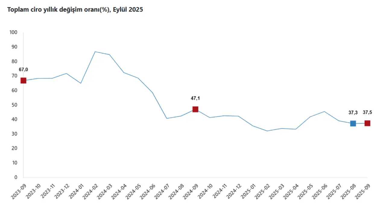 Aylık verilere bakıldığında ise sektörler arasında karma bir tablo ortaya çıktı. Toplam ciro endeksi, 2025 yılı Ağustos ayına göre yüzde 4,6 artış kaydetti.