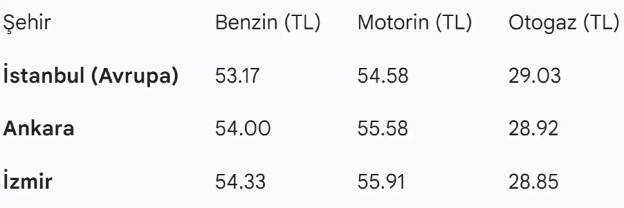 İndirim öncesinde şehir bazlı güncel pompa fiyatları ise şu şekilde listeleniyor: