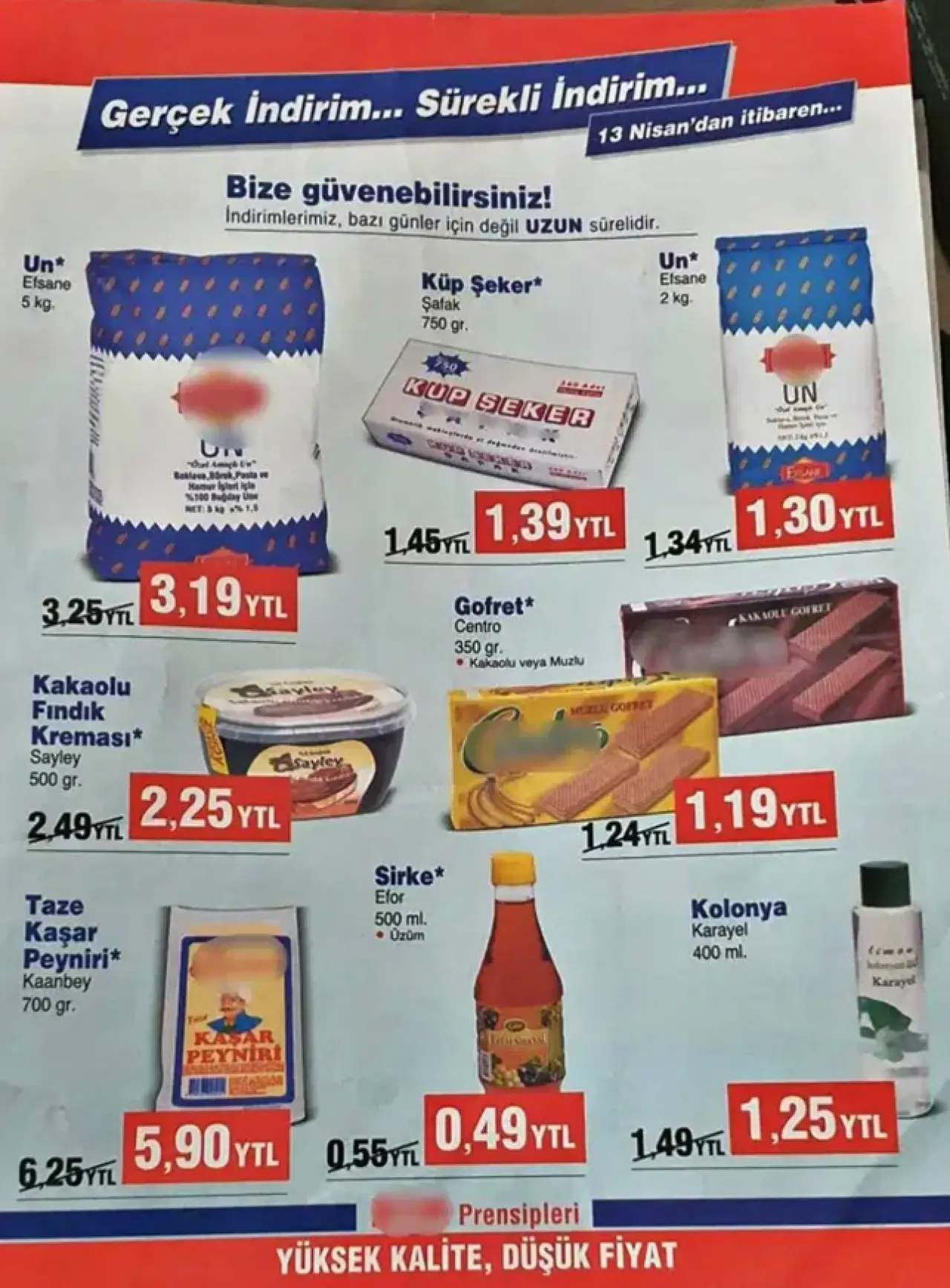 Büyük zincir market verileri, 2005 yılında 5 TL ile 5 kg un, küp şeker ve sirke gibi birden fazla temel gıda ürününün rahatlıkla alınabildiğini gösteriyor. Hatta temel gıda miktarını dengeleyen bir tüketici, sepetine fındık kreması ve gofret de ekleyebiliyordu.;