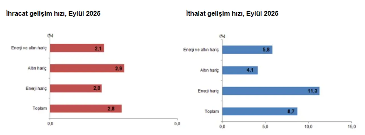 - İhracatın İthalatı Karşılama Oranı: 2024 Eylül'deki yüzde 81,0 seviyesinden, 2025 Eylül'de yüzde 76,6'ya geriledi.