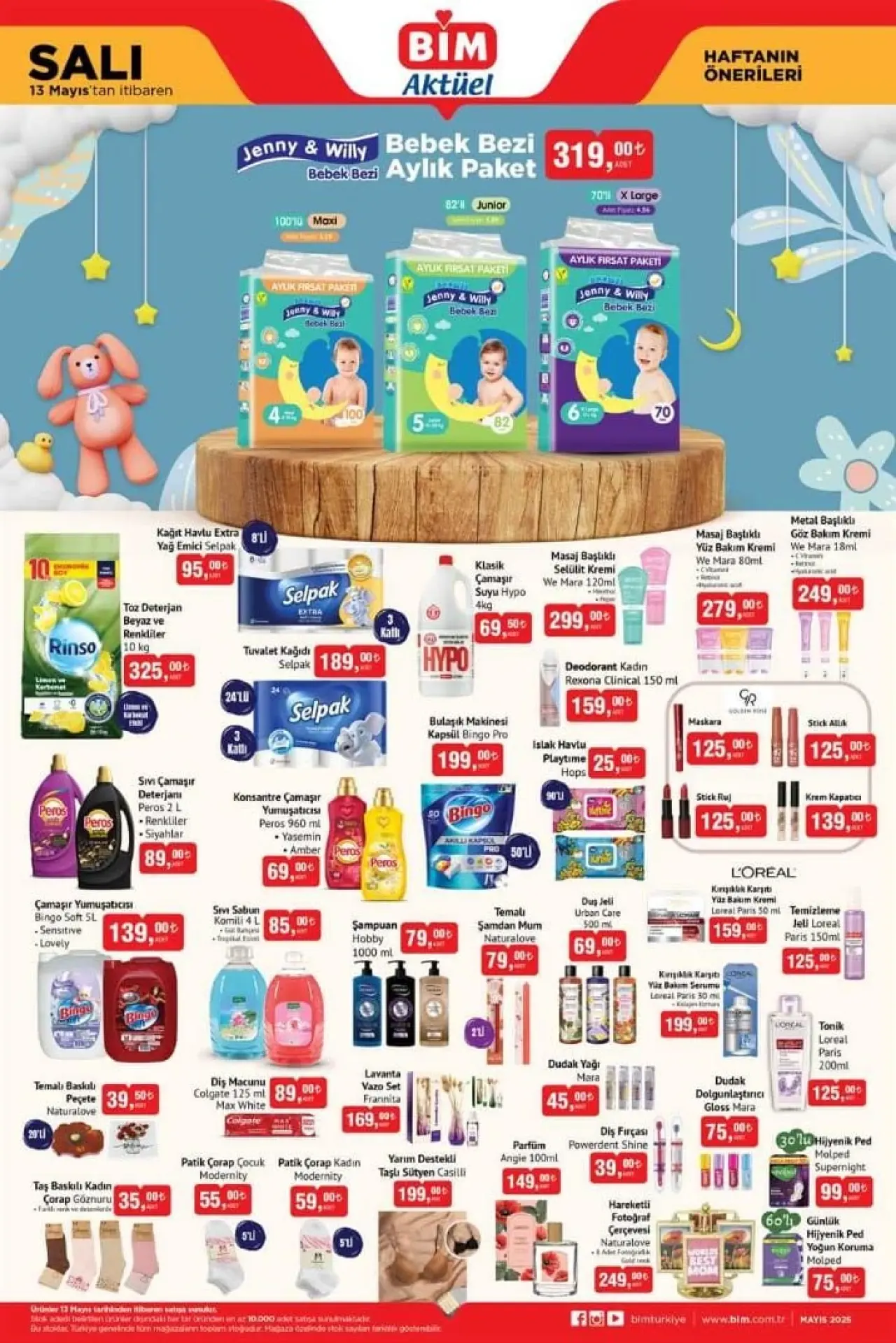 İndirimli ürünler 13 Mayıs Salı gününden itibaren tüm BİM mağazalarında satışa sunulacak. Ürünler, kampanya süresi boyunca stoklarla sınırlı olarak tüketicilere ulaştırılacak.