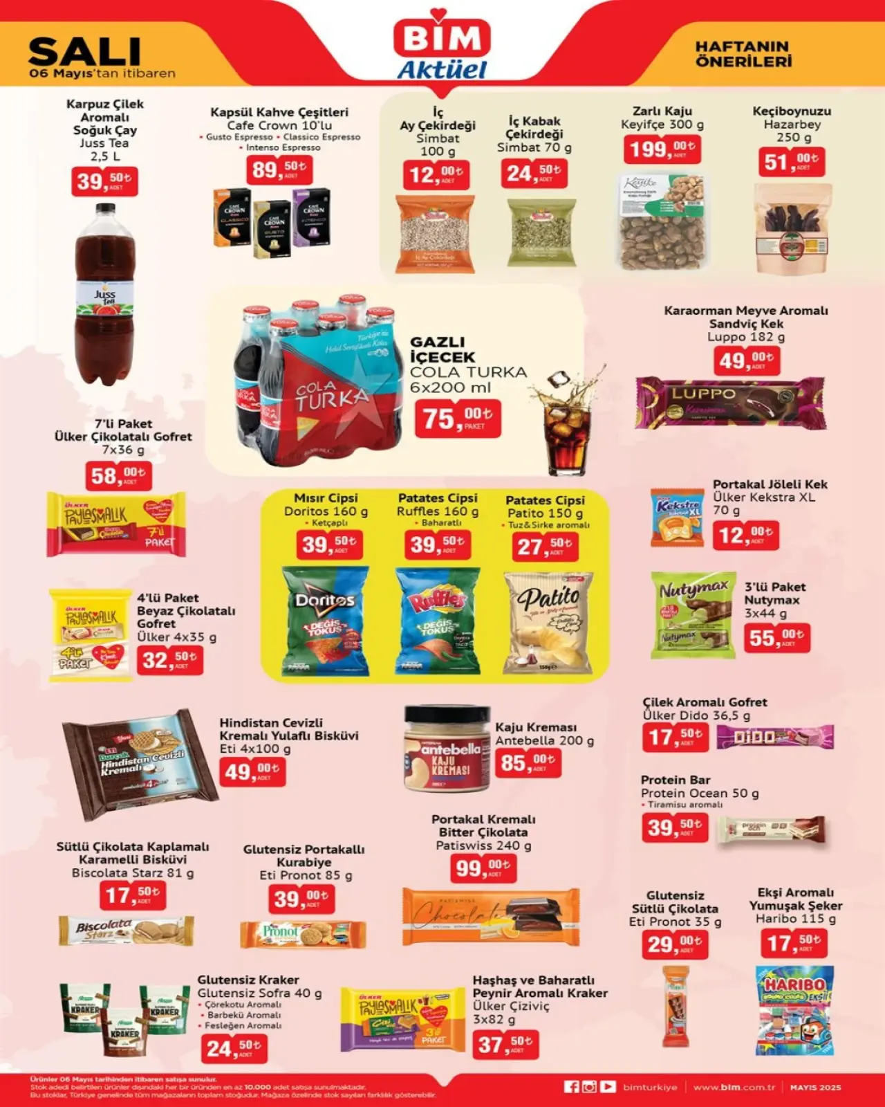 Bu ürünler, 6 Mayıs 2025 Salı gününden itibaren BİM mağazalarında ve bim.com.tr üzerinden satışa sunulacak. İndirimli ürünler stoklarla sınırlı olup, kampanya süresince geçerlidir.
