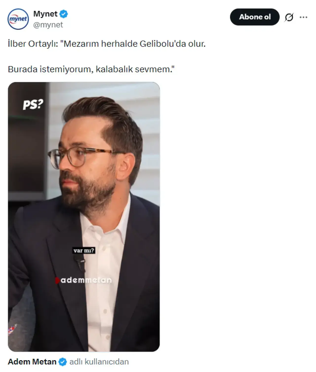Programdaki açıklamalarında yaşamı ve tercihlerine dair samimi ifadeler kullanan İlber Ortaylı, kendisine yöneltilen bir soru üzerine defin yeri konusundaki düşüncelerini şu sözlerle paylaşmıştı: