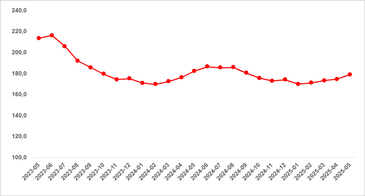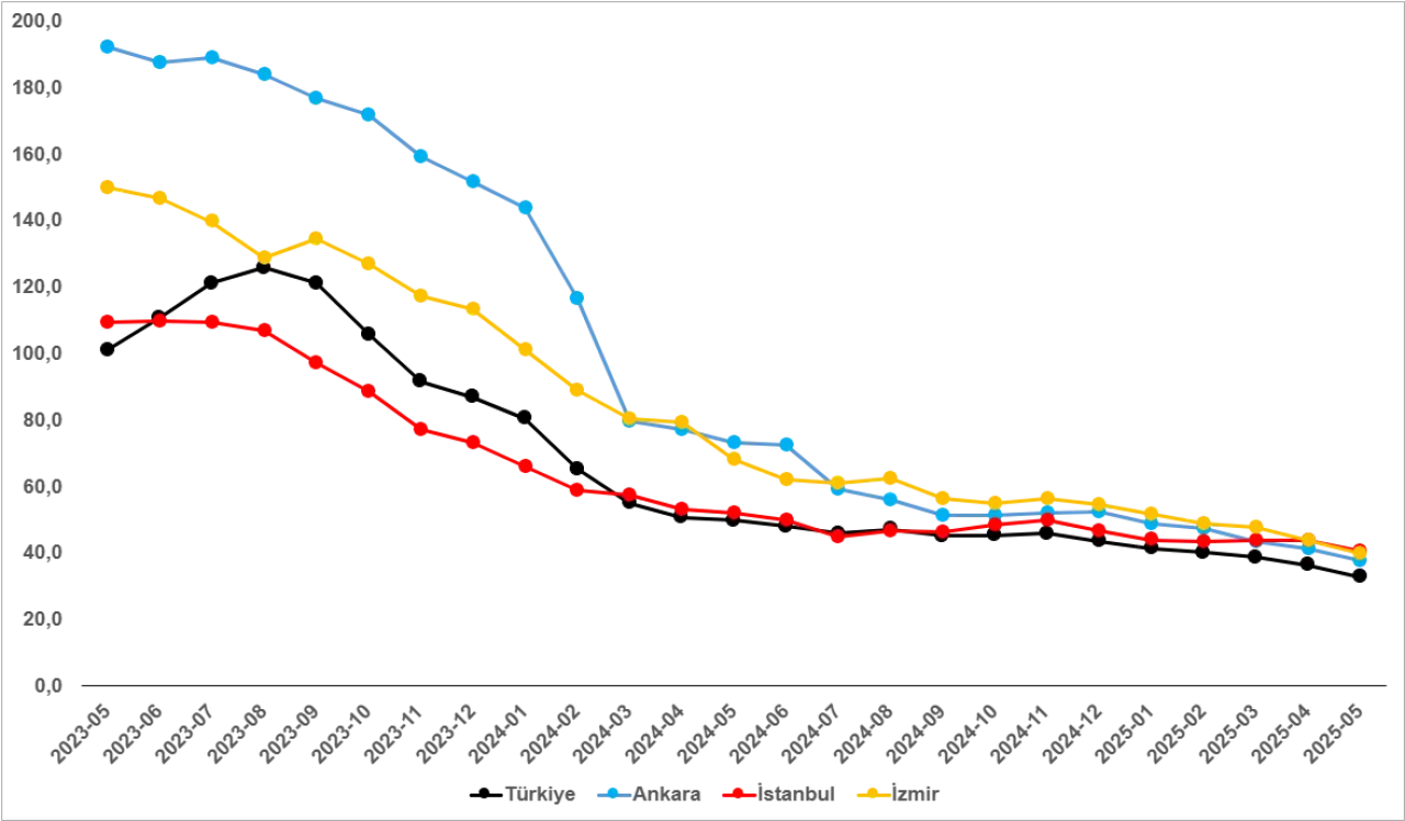 Mayıs 2025 itibarıyla Türkiye genelinde reel kira fiyatları geçen yılın aynı dönemine göre %1,8 oranında düştü. Buna karşın, İstanbul’da %3,9, Ankara’da %1,8, İzmir’de ise %3,3 oranında reel kira artışı yaşandı. Ortalama kiralık konut ilan m² fiyatları ise sırasıyla İstanbul’da 300 TL, Ankara’da 224,1 TL, İzmir’de 264,8 TL olarak kaydedildi.