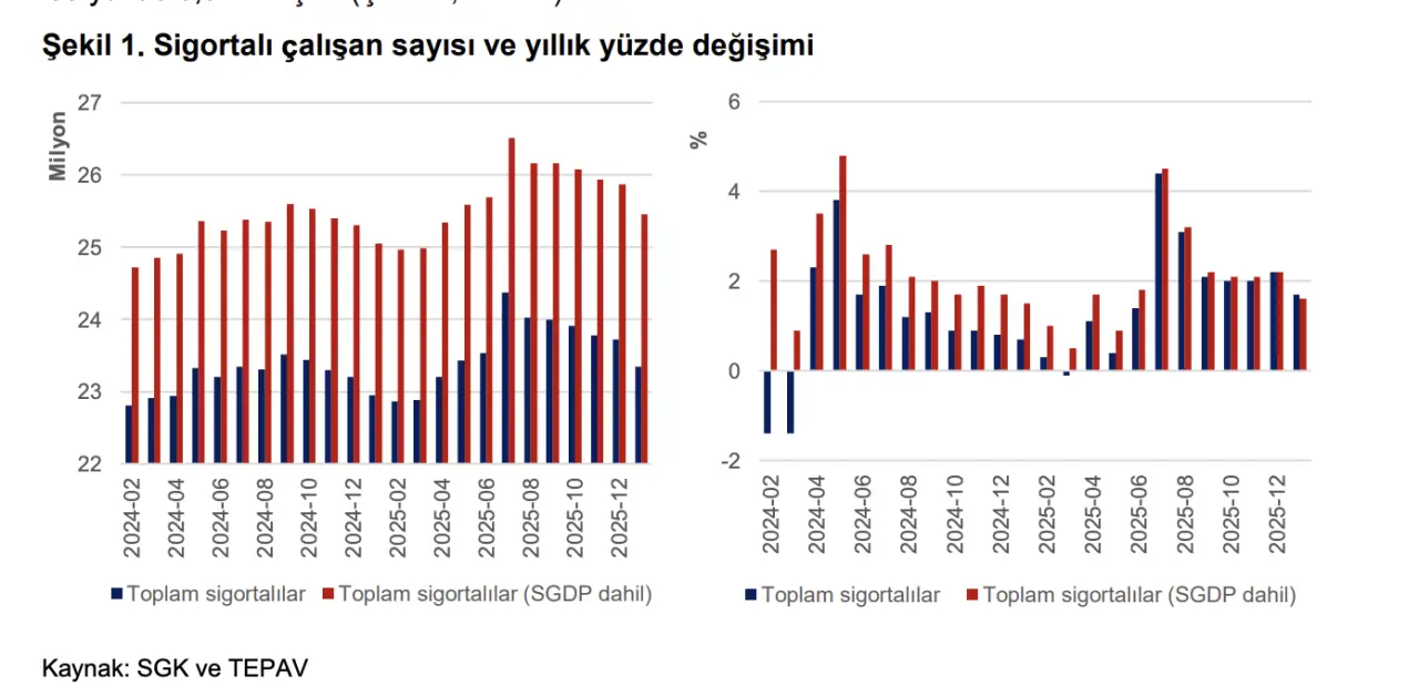 Türkiye Ekonomi Politikaları Araştırma Vakfı (TEPAV), SGK verilerine dayandırdığı Ocak 2026 İstihdam İzleme Bülteni'ni yayımladı. Bülten, Türkiye'deki sigortalı istihdam tablosuna ilişkin çarpıcı bir tablo ortaya koydu.