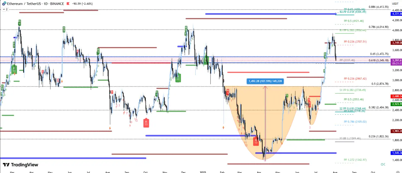 Ana destek: 3.337 dolar (Fibonacci 0.618)