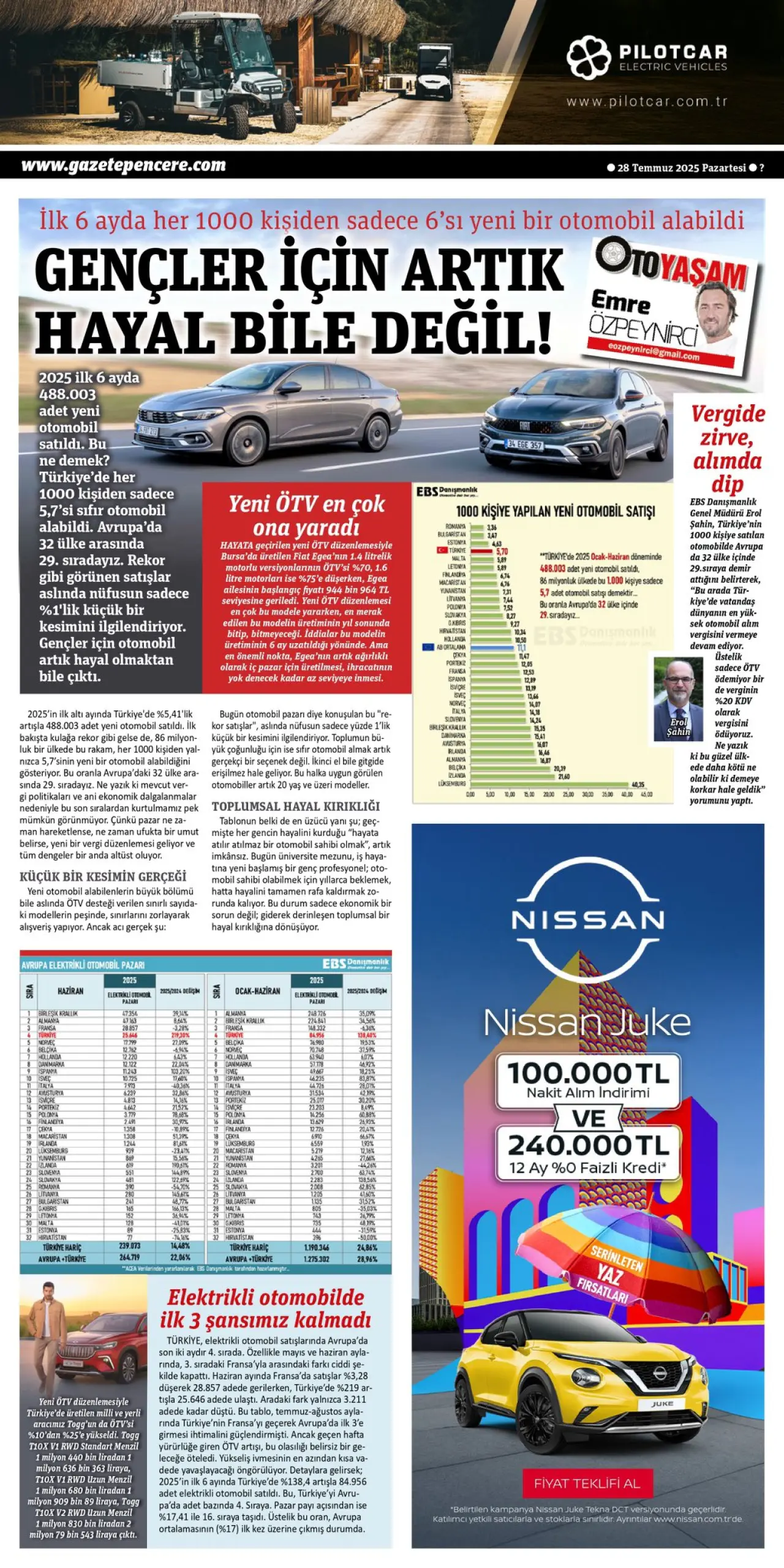 28 Temmuz 2025 tarihli OtoYaşam köşesi, Emre Özpeynirci