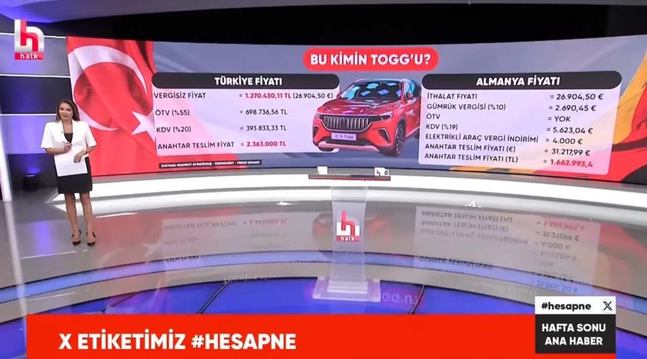 Yerli ve milli otomobil TOGG’un Türkiye’deki satış fiyatı ile Almanya’daki satış fiyatı arasındaki uçurum, otomobil vergilendirme sistemine yönelik eleştirileri yeniden gündeme taşıdı. Türkiye’de 2 milyon 363 bin TL’ye satılan TOGG, Almanya’da sadece 31.218 Euro yani yaklaşık 1 milyon 663 bin TL’ye anahtar teslim olarak sunuluyor. Aradaki fark tam 700 bin TL.