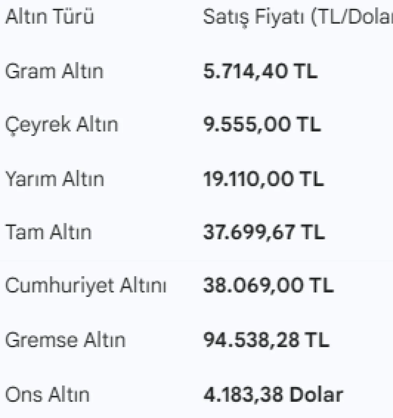 Küresel piyasalardaki ons altın hareketliliği, yurt içinde gram altın fiyatlarını doğrudan etkilerken; Cumhuriyet, tam, çeyrek ve yarım altın gibi fiziki yatırım araçlarının fiyatları da bu gelişmeler ışığında şekilleniyor.