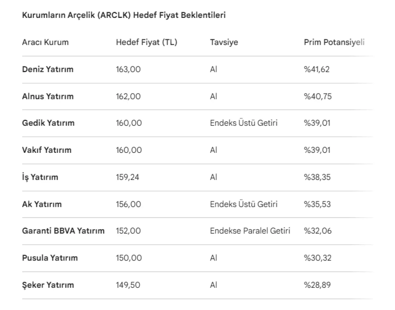 İşte aracı kurumların Arçelik hissesi için belirlediği yeni hedef fiyatlar ve tavsiyeleri: