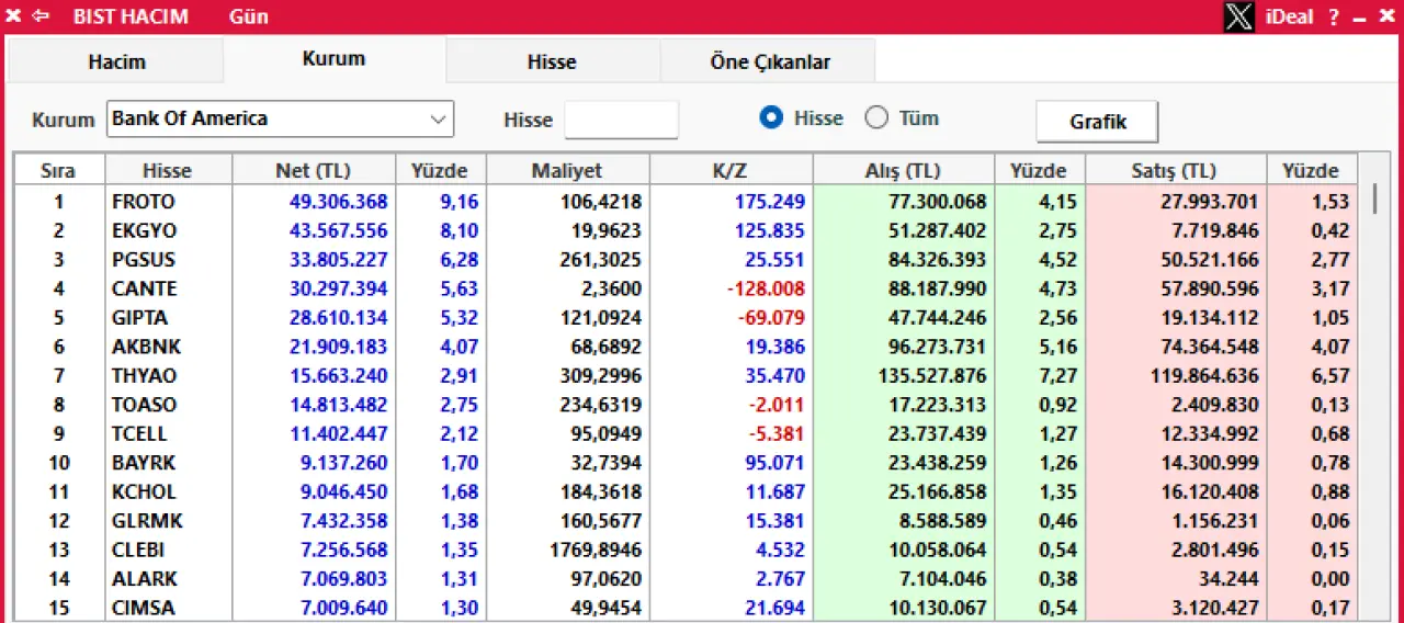 Borsa İstanbul’da 7 Ağustos 2025 tarihli işlem gününde, yabancı yatırımcılar arasında öne çıkan kurumlardan biri olan Bank of America, özellikle sanayi ve gayrimenkul sektörlerinde yoğun alımlar gerçekleştirdi. Kurumun net alım yaptığı hisseler ve detayları şu şekilde.