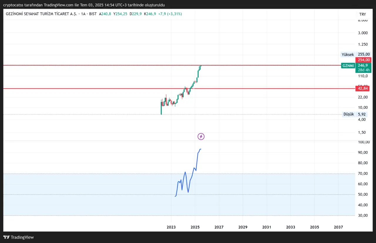O gün Gezinomi (GZNMI) hissesi yaklaşık 42 TL seviyesinde işlem görüyordu.
