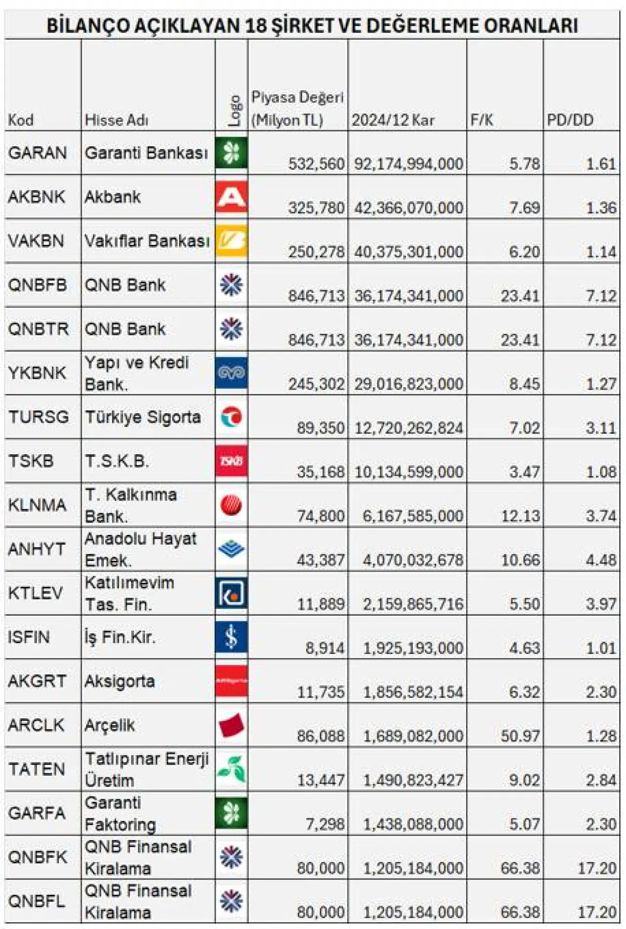 Borsa İstanbul’da şirketlerin 2024 yılına ait bilançoları açıklanmaya başladı. Yatırımcılar için kritik finansal göstergelerden biri olan Fiyat/Kazanç (F/K) oranları ve net kar rakamları, hisse senedi seçiminde önemli bir rol oynuyor. Peki, bilançosunu açıklayan 18 şirketin finansal durumu nasıl?