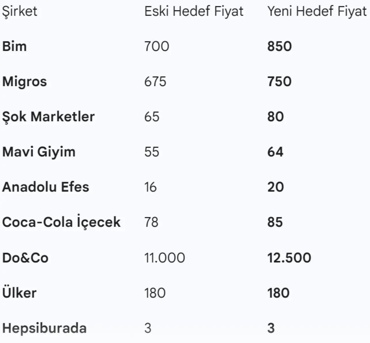 Analiz sonucunda en çok dikkat çeken revizyonlar Bim, Mavi ve Şok Marketler (SOKM) cephesinde gerçekleşti. İşte HSBC'nin güncel fiyat öngörüleri: