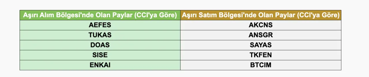 Aşırı Alım (CCI): AEFES, TUKAS, DOAS, SISE, ENKAI