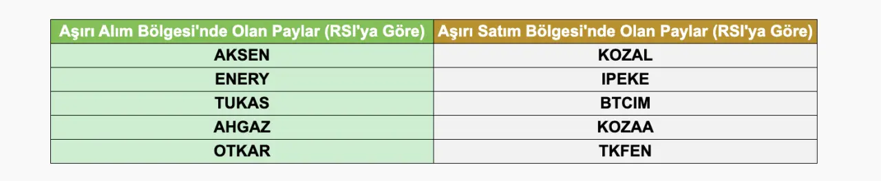 Aşırı Alım (RSI): AKSEN, ENERY, TUKAS, AHGAZ, OTKAR