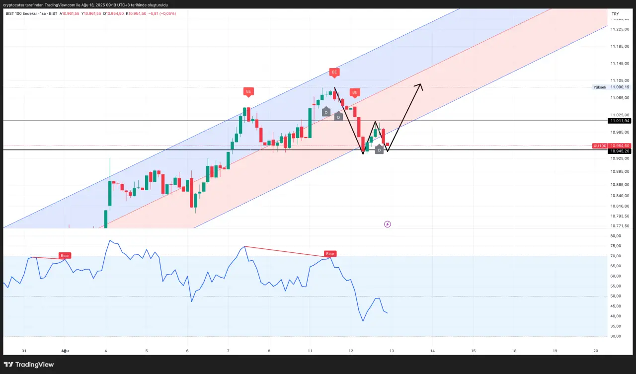 Analizlere göre, 11.012 – 11.025 aralığı formasyonun boyun çizgisi konumunda bulunuyor. Bu seviyenin yukarı yönde kırılması halinde hedef, formasyon yüksekliği kadar yukarıda, 11.100 – 11.120 bandı olarak öne çıkıyor.