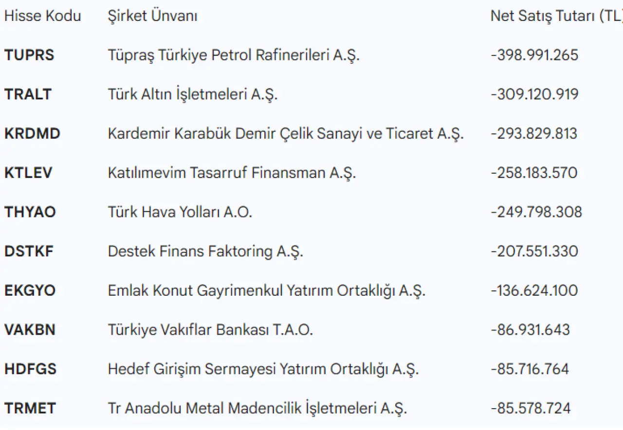 Endeksteki geri çekilmeye rağmen BofA müşterileri günü 1,18 milyar TL net alışla tamamlasa da, belirli hisselerde yoğun satış baskısı hissedildi. İşte dev aracı kurumun Çarşamba günü en çok elden çıkardığı hisseler ve satış tutarları: