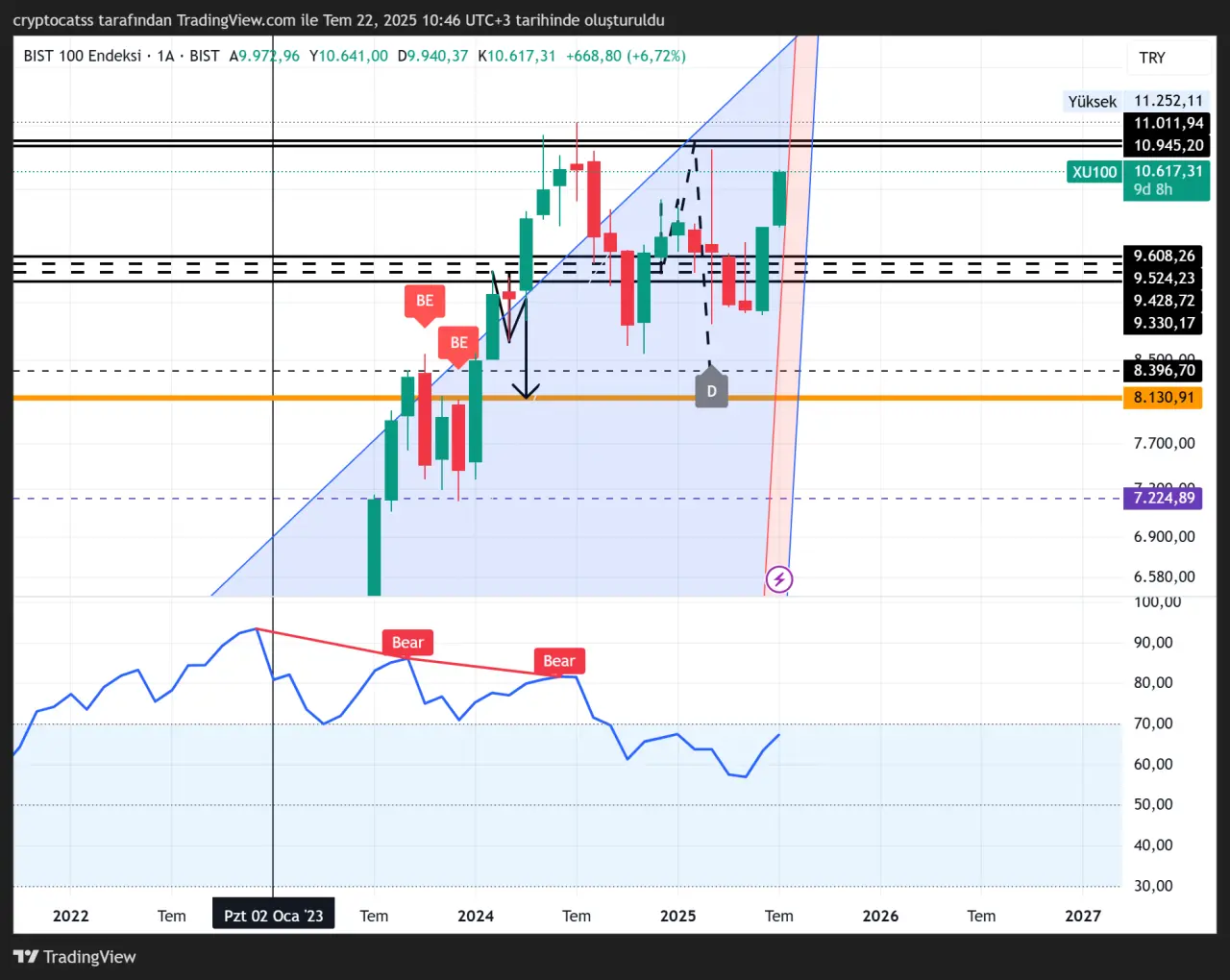Endeksin mevcut teknik yapısı, yukarı yönlü hareketin sürebileceğine işaret etmekle birlikte, geçmişten gelen negatif RSI uyumsuzlukları nedeniyle temkinli iyimserlik ön planda tutulmalı. Özellikle hacim destekli yükselişler ve 11.000 üzeri kapanışlar, daha güçlü bir trendin habercisi olabilir.