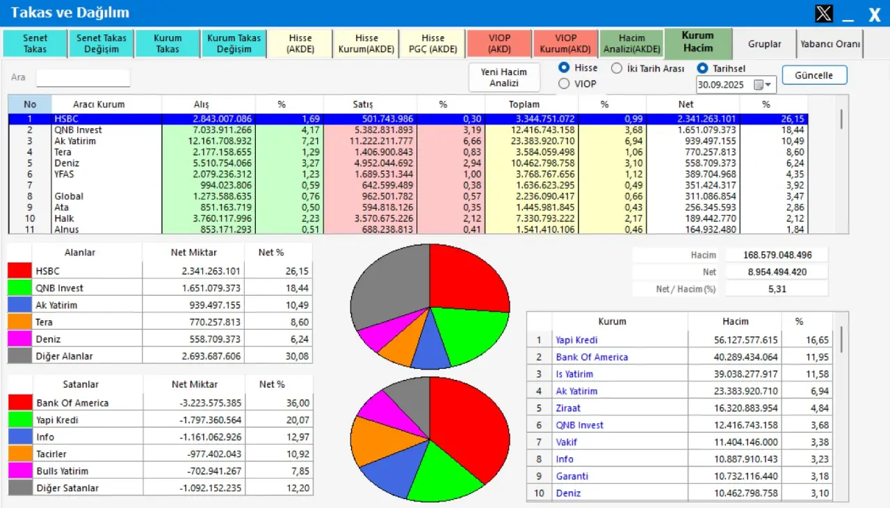Borsa yatırımcıları açısından HSBC ve QNB Invest’in alımlarda zirvede yer alması, yabancı kurumların ise satış tarafında ağırlığını artırması dikkat çekici bulundu.
