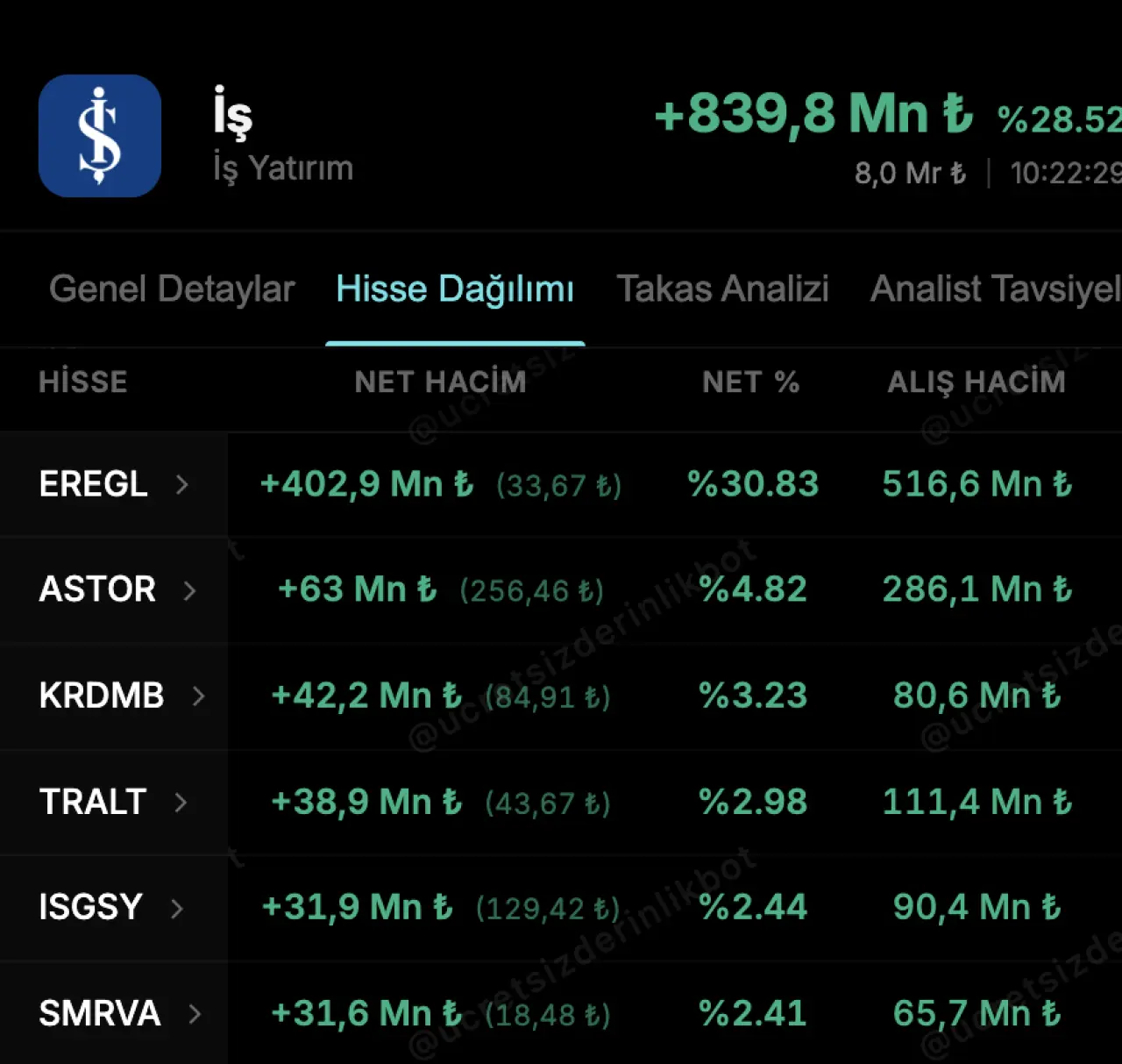 | EREGL | +402,9 Mn ₺ | 33,67 ₺ | %30,83 | 516,6 Mn ₺ |