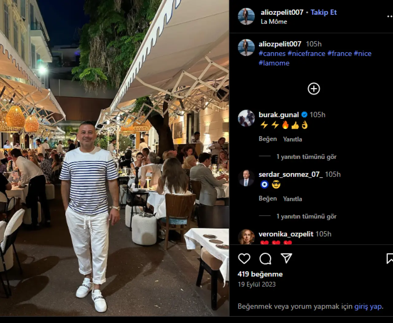 Hesapta kullanılan görsellerden biri, aslında Instagram’da @aliozpelit007 adlı kullanıcıya ait. Cannes/Nice/Fransa’da çekilen kare, Yalçın Ezer hesabında “kendi hayatıymış” gibi paylaşılıyor. Bu durum, sosyal medyada sahte bir kimlik üzerinden güven algısı yaratıldığını gözler önüne seriyor.