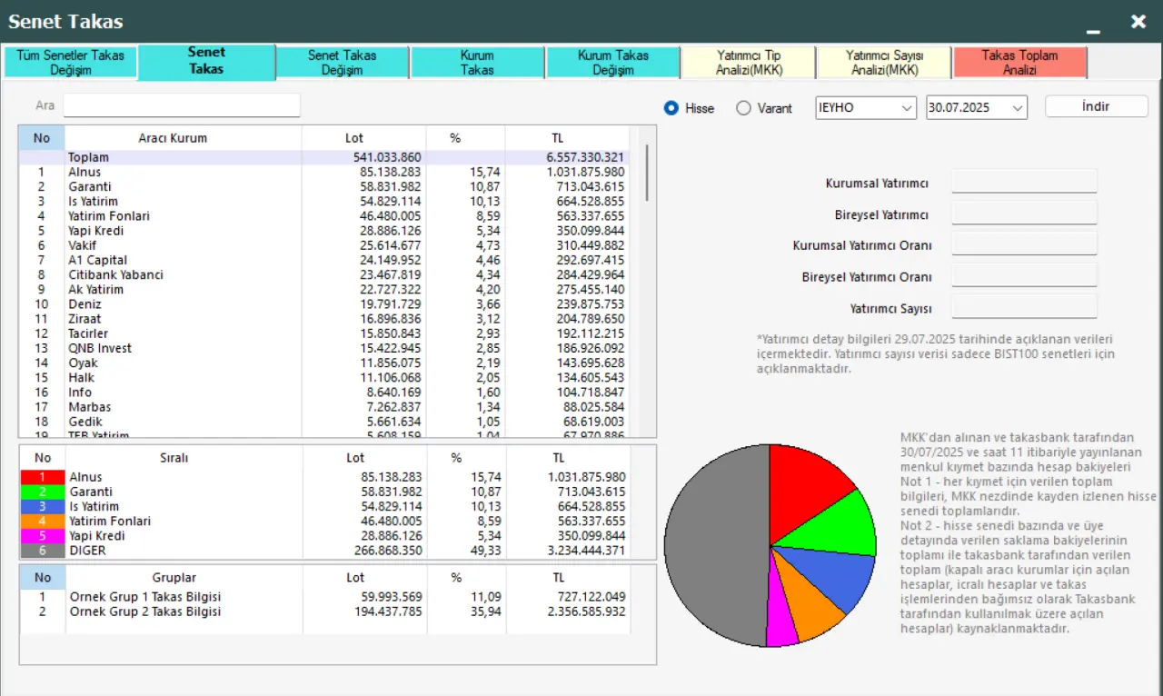 30 Temmuz 2025 – IEYHO Takas Dağılımı