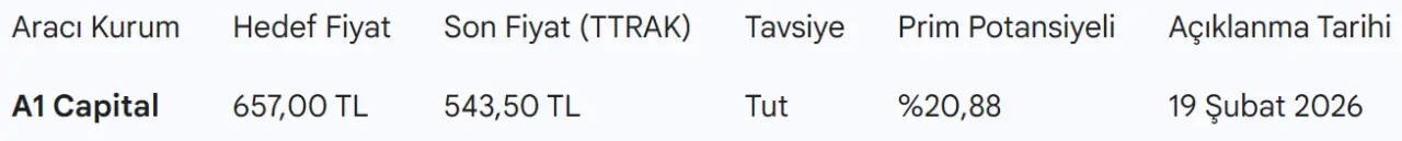 A1 Capital, Türk Traktör ve Ziraat Makineleri A.Ş. (TTRAK) payları için güncel hedef fiyat ve tavsiyesini paylaştı. 19 Şubat 2026 tarihinde yayımlanan raporla birlikte, şirketin hisseleri üzerindeki potansiyel beklentiler yatırımcılarla paylaşıldı.