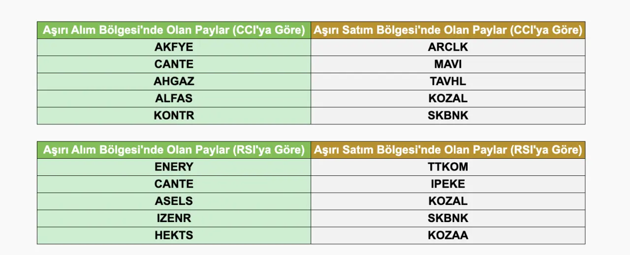 – KOZAL ve SKBNK, her iki göstergede de aşırı satım sinyali veriyor.