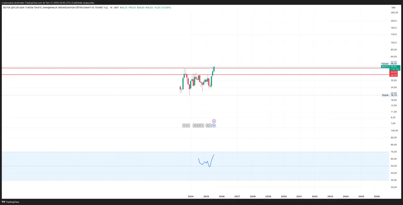 Borsa İstanbul’da işlem gören BÜYÜK ŞEFLER GIDA TURİZM TEKSTİL DANIŞMANLIK ORGANİZASYON EĞİTİM SANAYİ VE TİCARET A.Ş. (BIGCH), aylık periyotta uzun süredir yatırımcıların dikkatle izlediği önemli bir teknik eşiği aşarak yeniden gündeme oturdu.
