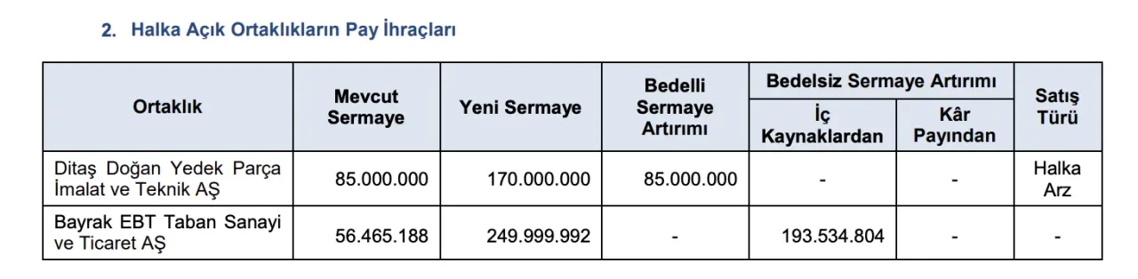 Artırılan sermaye, halka arz yöntemiyle yatırımcılara sunulacak. Şirket bu işlem kapsamında bedelsiz sermaye artırımı yapmayacak.
