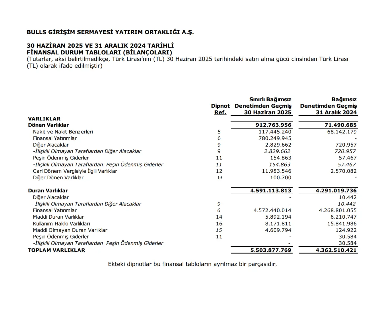 Bulls Girişim Sermayesi Yatırım Ortaklığı A.Ş. (BULGS), 30 Haziran 2025 itibarıyla 6 aylık finansal sonuçlarını açıkladı. Şirket bilançosu ilk bakışta kârını koruyor gibi görünse de, detaylar operasyonel gelirlerdeki sert düşüşü ve nakit yaratma kapasitesindeki zayıflığı ortaya koyuyor.