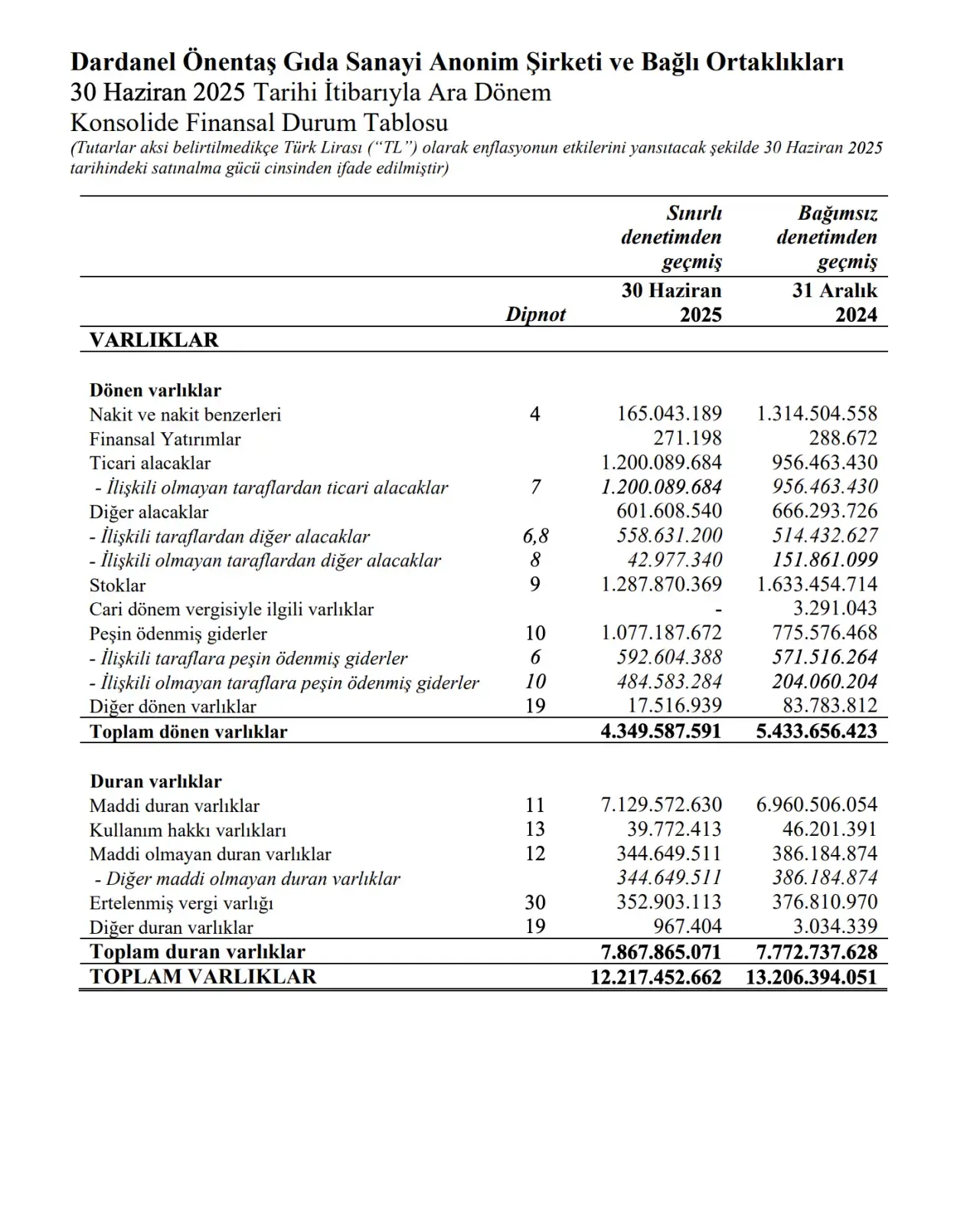 Dardanel (DARDL), 2025 yılının ilk yarısına ait finansal sonuçlarını açıkladı. Kamuya duyurulan mali tablolar, şirketin kârdan çok borç ve finansman yüküyle boğuştuğunu ortaya koydu.