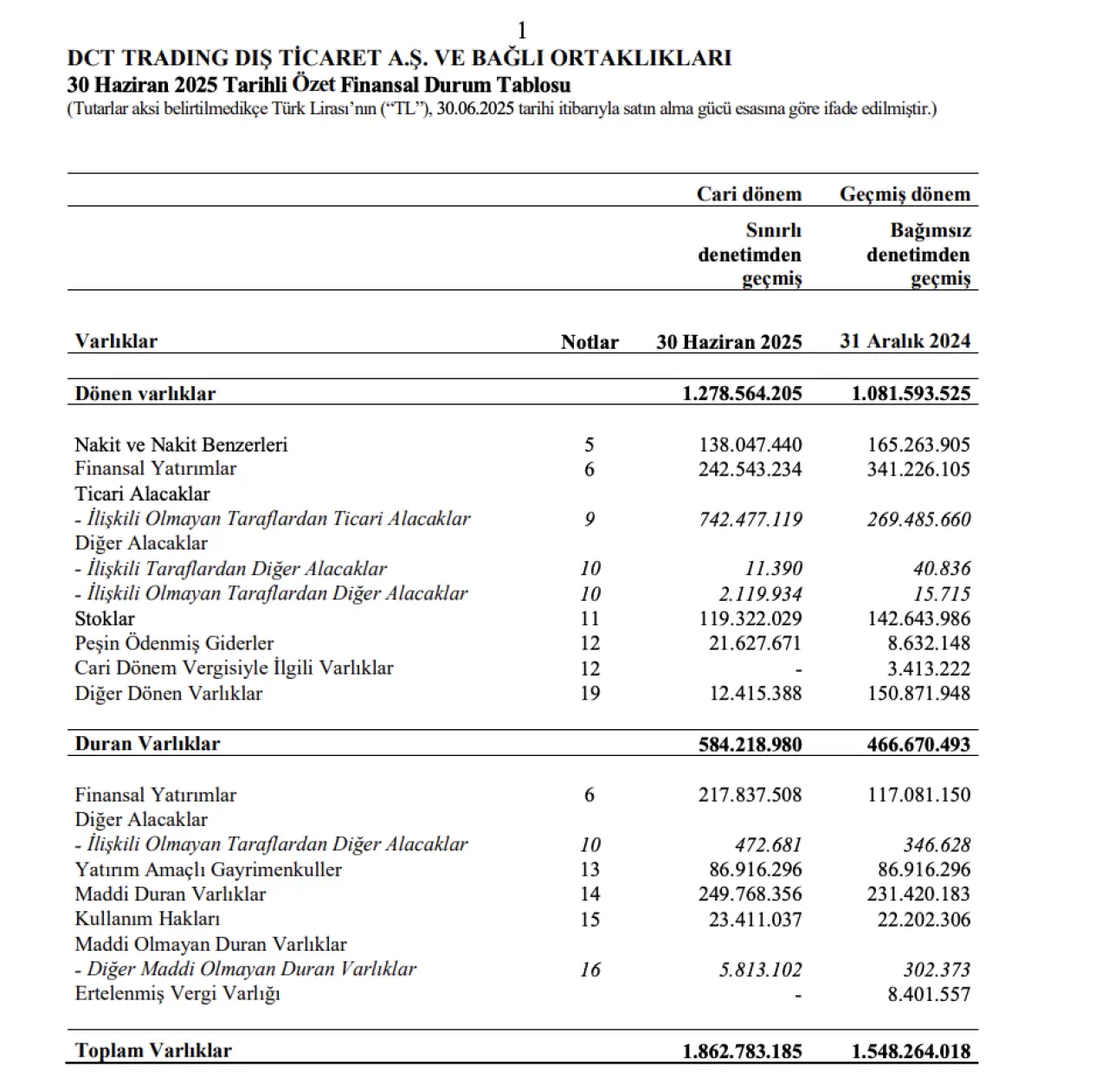 Faaliyet kârına rağmen, yüksek enflasyon ortamında oluşan parasal pozisyon kaybı (−92,5 milyon TL) ve artan finansman giderleri (−115,1 milyon TL), kârlılığı ciddi biçimde sınırladı. DCTTR, bu dönemde sadece 15,9 milyon TL net dönem kârı açıklayabildi.