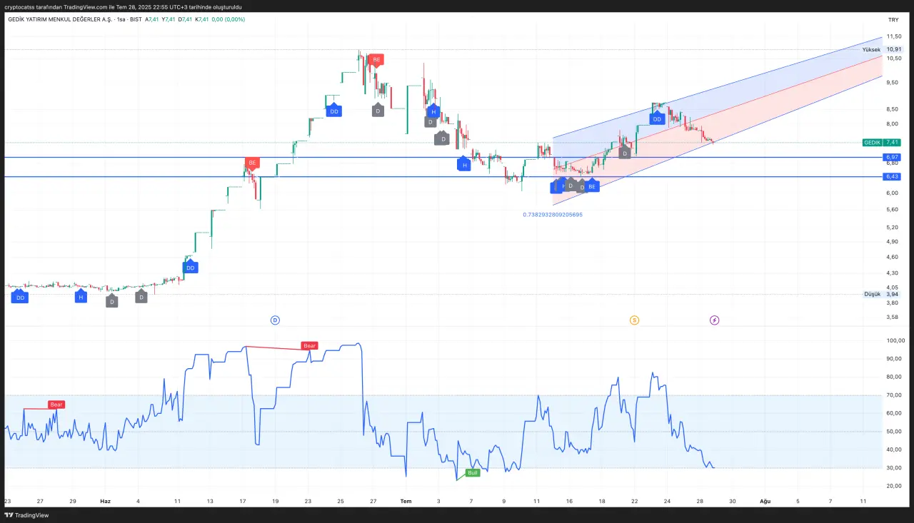 GEDIK, kanal desteğinde tutunmayı başarırsa kısa vadede yukarı yönlü bir tepki ihtimali gündeme gelebilir. Aksi durumda, satışların derinleştiği bir senaryo oluşabilir. Özellikle hacim verilerinin zayıf seyretmesi, yatırımcıların temkinli davranmasına neden oluyor. Bu analiz yatırım tavsiyesi değildir.