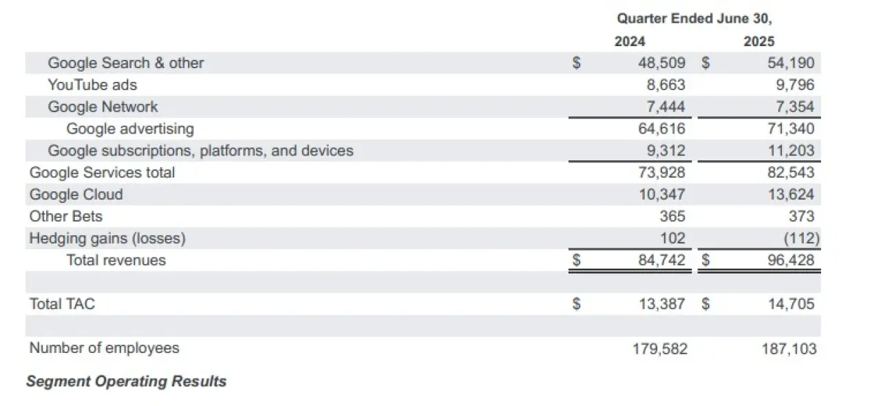 YouTube reklam gelirleri %13 artışla 9,8 milyar dolara, Google Cloud gelirleri ise %31’lik sıçramayla 13,6 milyar dolara ulaştı.