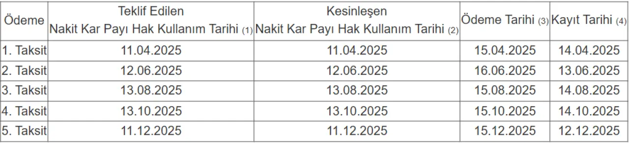 Yatırımcılar için en önemli detaylardan biri olan ödeme tarihleri ise aşağıdaki gibi kesinleşti: