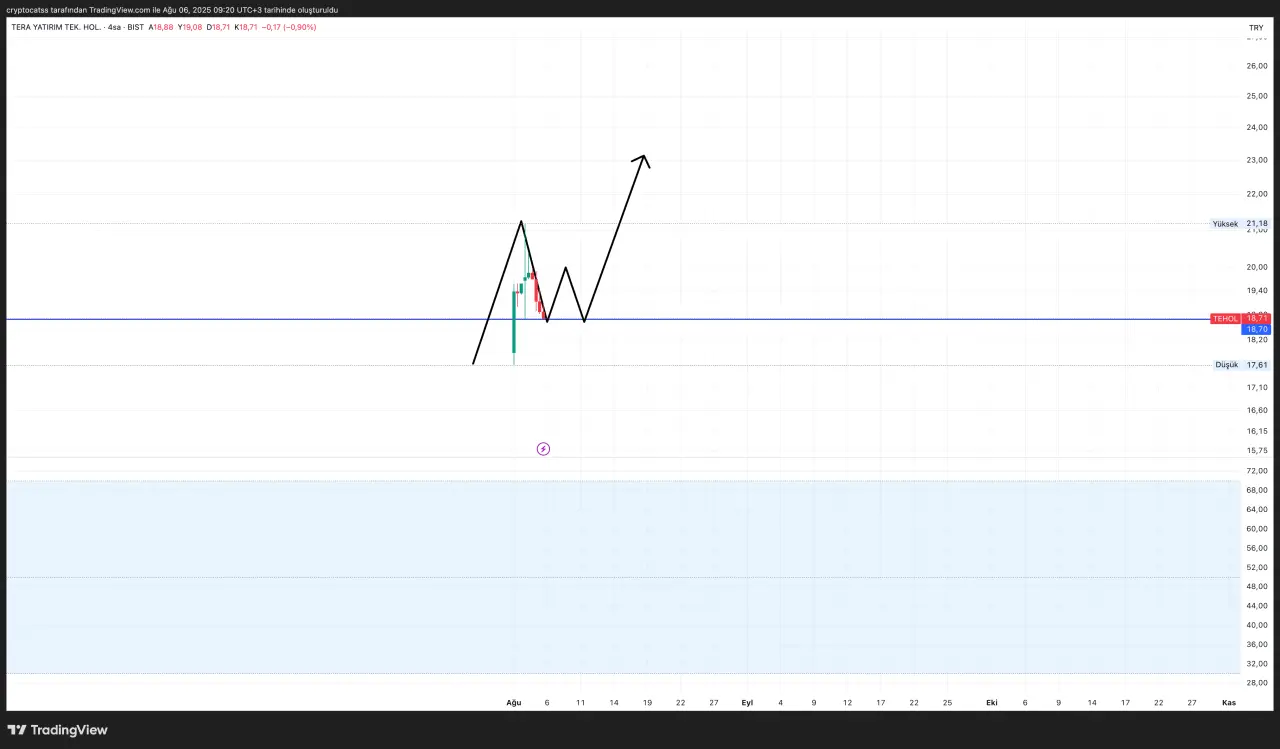 "TEHOL grafiğinde görülen bu teknik yapı, hacimli bir kırılımla tamamlanırsa orta vadede dikkat çeken bir yükseliş potansiyeli doğabilir. Ancak 18,70 altındaki kapanışlar, formasyonun geçersiz kalmasına yol açabilir."